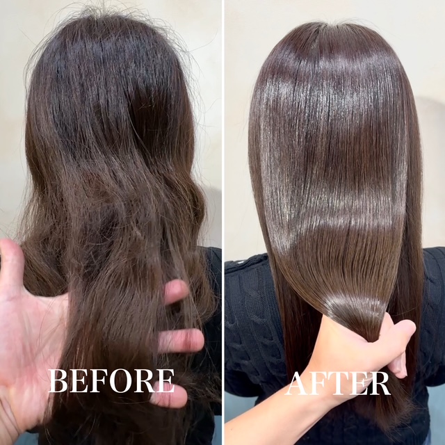 「髪質改善ハウタムカラープレミアム」のビフォーアフターをお送りします。